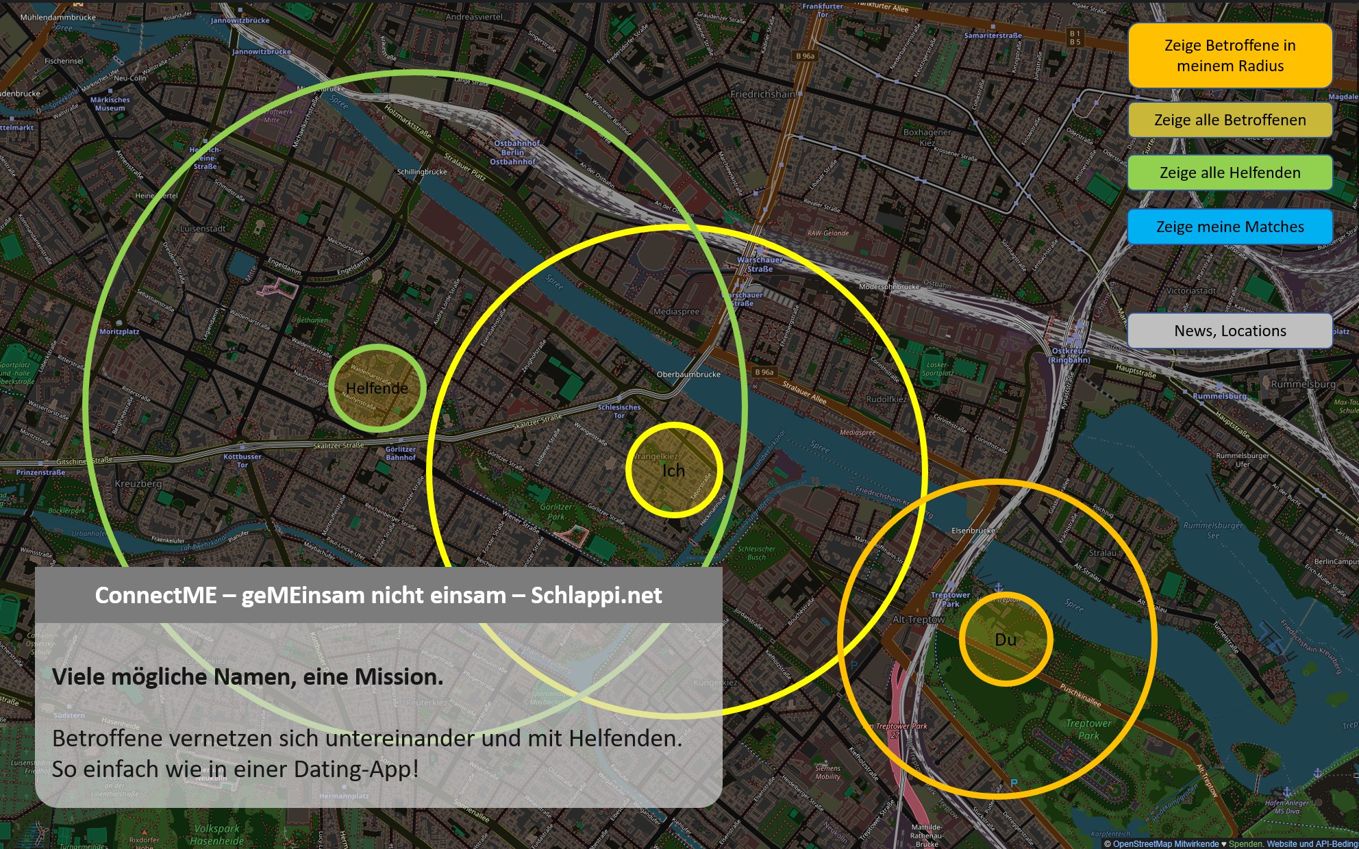 "Wir" das sind Erik Zürn und ich. Erik hat selbst ME/CFS als Folge von LongCovid und organisiert seit Jahren Selbsthilfegruppen in Berlin. Außerdem ist er Host der Seite "Stimmen aus dem Off", wo Betroffene ihre Geschichten erzählen können und wo bereits jetzt ein sehr beliebter und aktueller Nachrichtenteil als Inspiration für unsere App dient. Erik war in seinem vorherigen Leben Wissenschaftskommunikator und hat das Konzept zur App geschreiben, das ich sehr liebe und Euch hier zum Lesen zur Verfügung stelle.